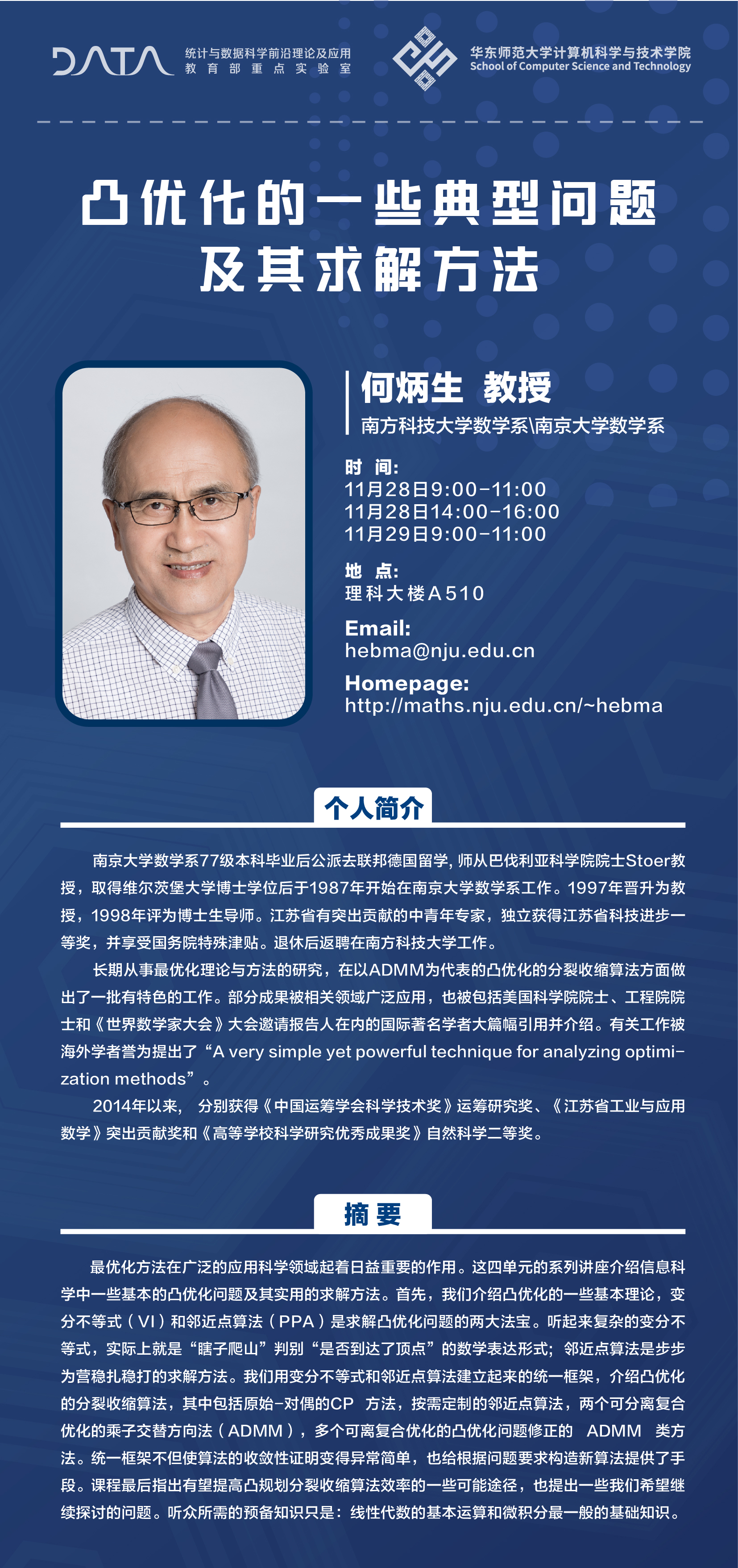 报告人:何炳生 教授 (南方科技大学数学系/南京大学数学系)