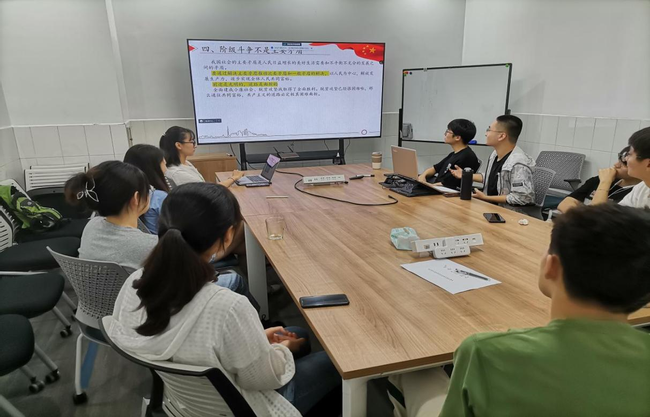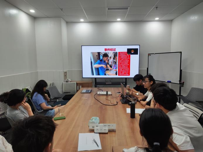 隆福辉、舒翔以及朱清怡、郑婉婷两组同志分别通过视频、PPT等形式带领支部同志了解京津冀暴雨期间转运K396、K1178次列车乘客英雄班组的事迹。