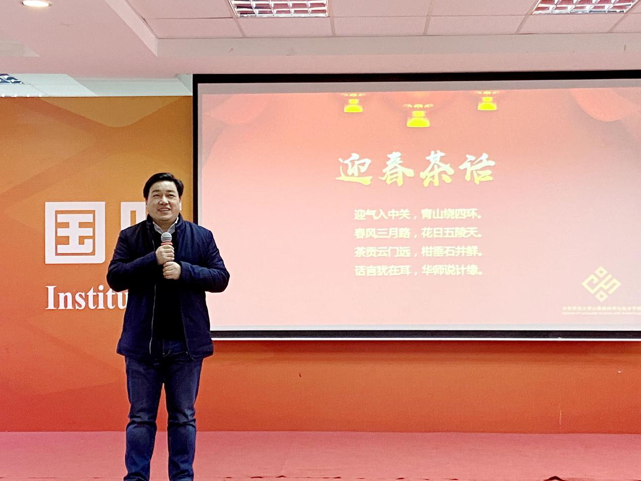 新春佳节来临之际,av影片 工会组织全院教职工开展新春茶话活动,党委书记王长波、副院长贺樑、副院长陈蕾、党委副书记徐世猛与大家欢聚一堂,辞旧岁、迎新春、道心声、话发展,共同展望美好未来。本次活动由工会主席谢瑾奎和工会委员杨文彧共同主持。谢主席表示珍惜此刻难得的相聚,更即兴赋诗一首,赢得阵阵掌声,对一年来各位老师给予工会工作的支持表示感谢。
