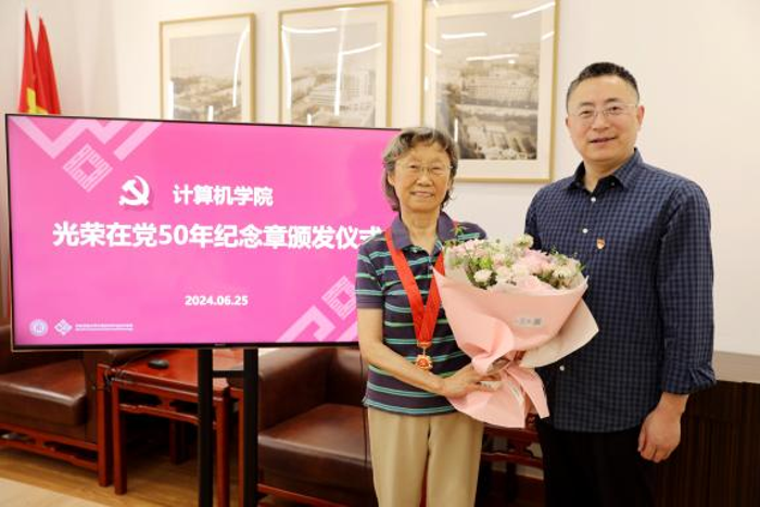 座谈会在雄壮的国歌声中正式启幕。学院党委书记余佳首先宣读了av影片 荣获2024年度“光荣在党50年”纪念章的获得者名单,李宜春、邵时两位老党员光荣获颁纪念章,全场党员以热烈的掌声向他们致以崇高的敬意。