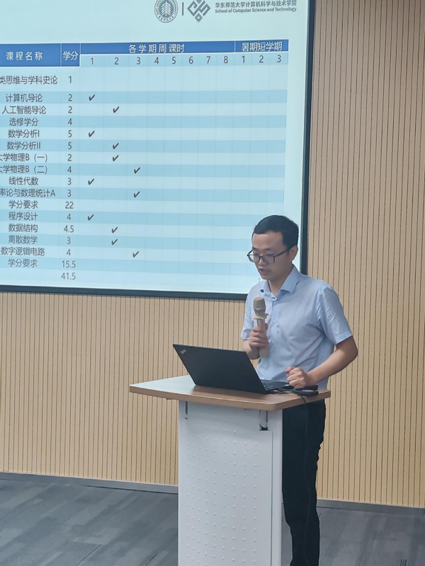 紧接着,院长助理李晨辉副教授从课程设置、课程包建设和教学激励等三方面介绍第一课堂的方案内容。依托学院师资队伍现状,新培养方案设计5大方向课程包,满足学生多元发展需要;依托校内专业合作共建,构建AI+X课程包,丰富学生交叉探索需求。他强调实验班重视学生专业素质培养,同时也对学生的交叉能力和综合素养提出了更高要求。