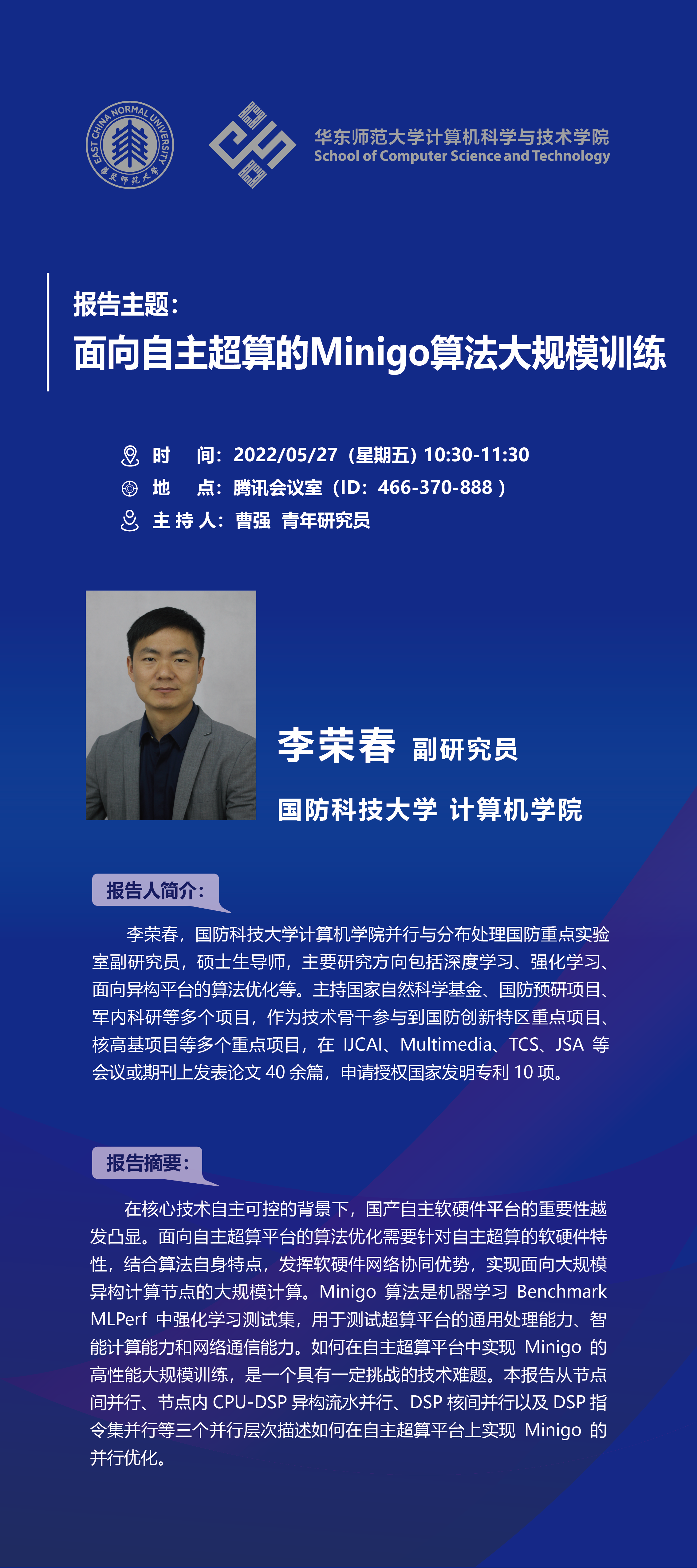 李荣春,GF科技大学av影片 并行与分布处理GF重点实验室副研究员,硕士生导师,主要研究方向包括深度学习、强化学习、面向异构平台的算法优化等。主持国家自然科学基金、GF预研项目、J内科研等多个项目,作为技术骨干参与到GF创新特区重点项目、核高基项目等多个重点项目,在IJCAI、Multimedia、TCS、JSA等会议或期刊上发表论文40余篇,申请授权国家发明专利10项。