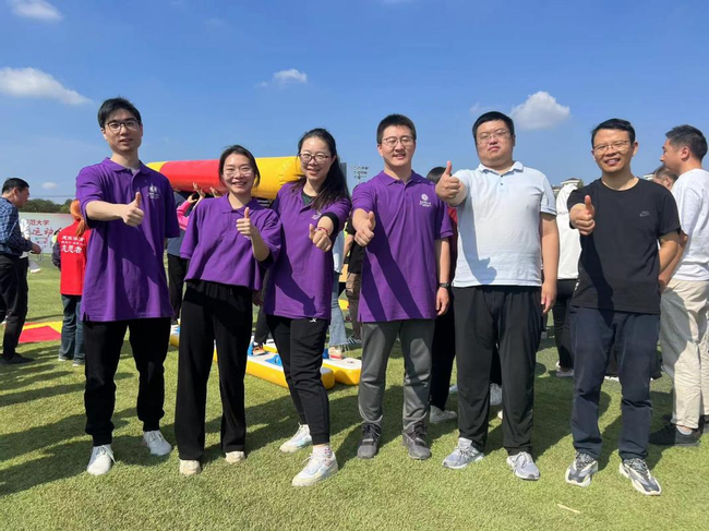 刘志、郭少阳、曹强、刘旦麟、高杨和张青六位老师合力完成了协力竞走项目,他们通力合作,协调动作,在整齐的口号声中顺利到达终点。该项目获得了三等奖。