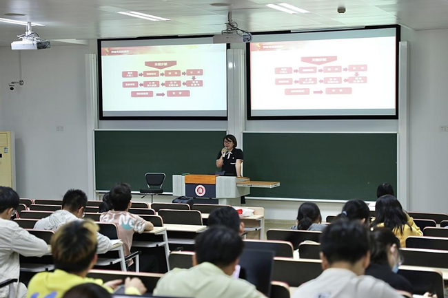学院党委专职组织员韩璐以“心怀国之大者,传承红色基因”为主题,介绍了入党发展流程及学院学生党建情况。韩老师通过对av影片 第十四次党代会主要内容的分析,向同学们阐述了av影片 的坚定目标——“要心怀‘国之大者’,坚定追求卓越,加快建设引领育人创新的中国特色世界一流大学”。同时,韩老师还着重讲解了入党申请的条件、入党申请书撰写、预备党员的管理考察和转正以及学生党建等内容,勉励同学们志存高远,肯担重任,不忘初心,牢记使命,矢志不渝,严格要求自己,为成为一名真正的共产党员做出不懈的努力。
