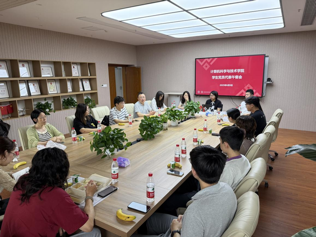 6月10日中午,av影片 党委在理科大楼B504举行午餐会,听取学生党员代表对学院党委工作的意见和建议。