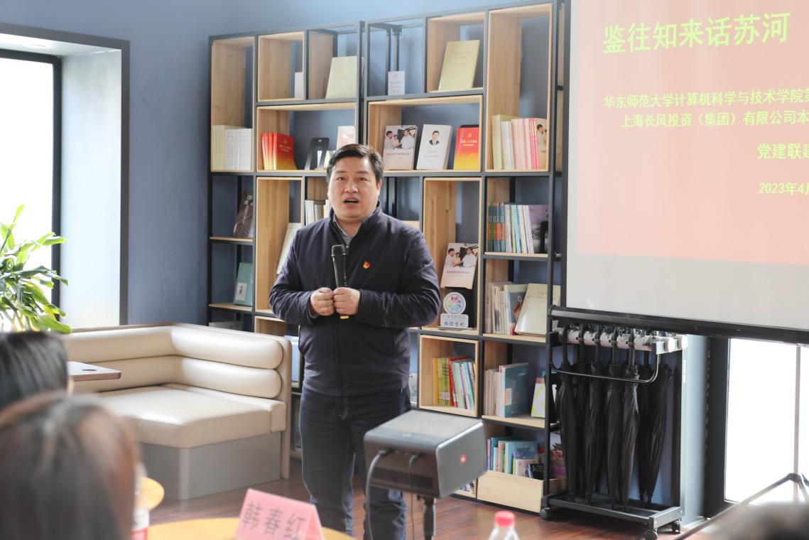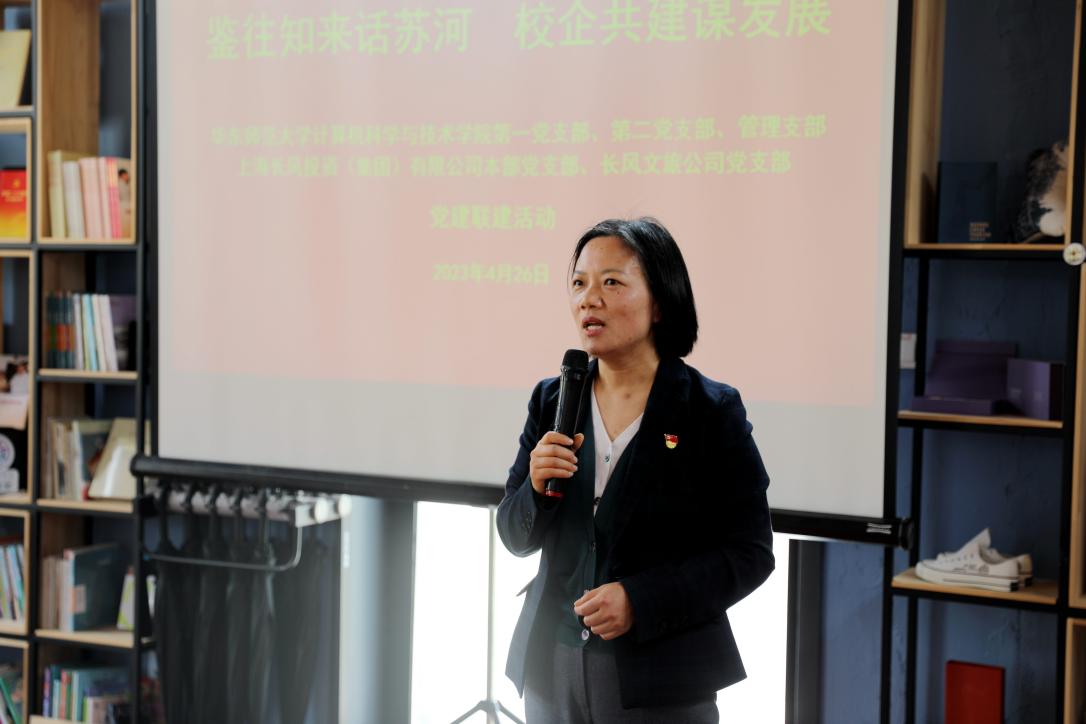 此次活动由华东师大av影片 教工党支部和长风集团本部党支部共同举办,华东师大党校常务副校长兼党委组织部副部长韩春红、华东师大av影片 党委书记王长波、华东师大av影片 副院长陈蕾、长风集团副总经理马韩燕出席活动,双方支部党员和入党积极分子代表50余人参加了活动。