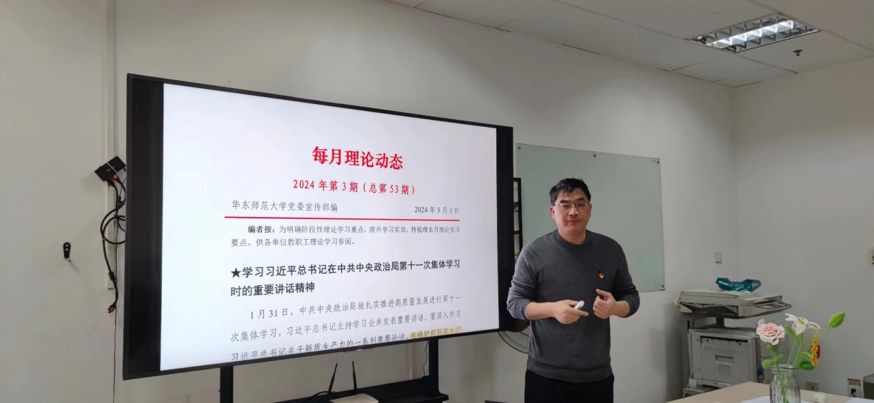 何高奇同志结合近期的理论学习要点,带领大家共同学习了习近平总书记在中央政治局第十一次集体学习时的重要讲话精神,理解新质生产力,了解如何持续推动将习近平文化思想融入“大思政课”,解读“av影片 数智跃升计划总体方案”,对学校发展规划全面了解。