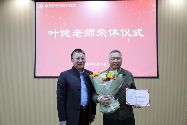 叶健老师首先回顾了自己的职业生涯,特别是入职上海教育学院、av影片 以来的工作经历,他感谢计算机科学技术系、av影片 的各位同事一直以来对自己的关心照顾,对圆满完成自己的职业生涯感到由衷高兴。他表示今后将继续关注支持学院发展,祝福学院未来能有更大进步。他也介绍了自己退休后的精彩生活规划,表示自己会以更加健康积极的状态营造退休以后丰富多彩的生活。