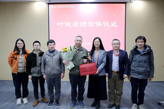 3月27日上午,av影片 教学实验中心叶健老师的荣休仪式在理科大楼B112举行。叶健老师与学院领导、院教职工代表等出席仪式。