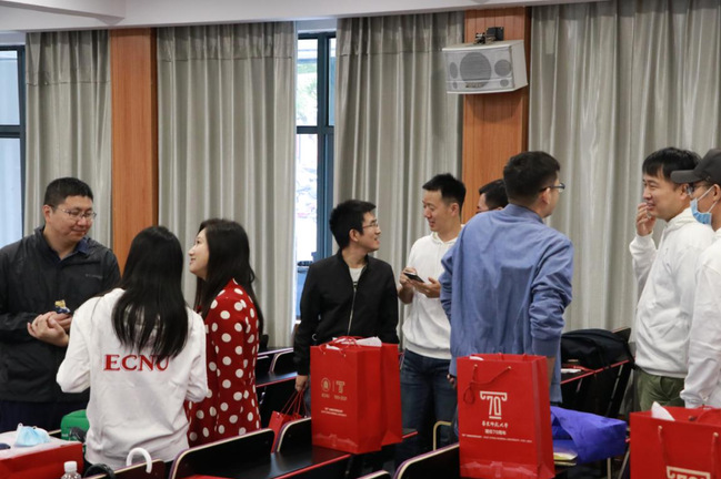 计算机楼115教室承载了计算机专业校友太多的回忆,回到原来上课的教室,他们互相寒暄,了解近况。有的虽然不是同一届毕业的,但此刻的相遇也是非常亲切的。老中青不同年代的校友们亲切交谈,怀着愉悦的心情回忆往事,合影留念。