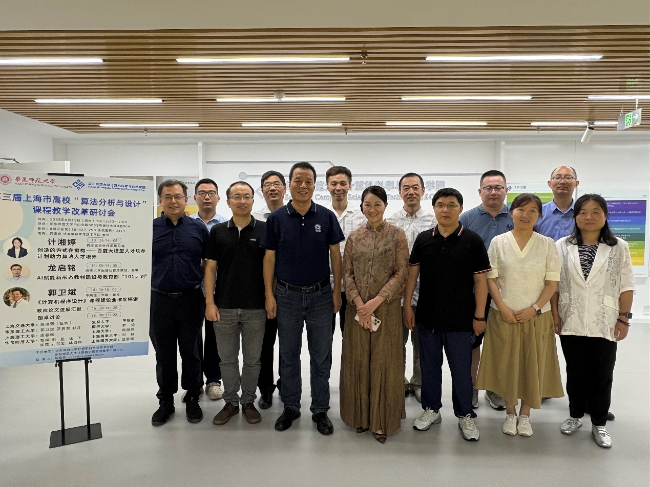 2025年9月13日下午,第三届上海市高校“算法分析与设计”课程教学改革研讨会在av影片 理科大楼B座504室和线上腾讯会议同步举行。围绕“算法分析与设计”课程教学改革与发展,论坛邀请了百度高校合作部计湘婷副总监、清华大学出版社龙启铭首席策划/编审,以及华东理工大学郭卫斌教授做特邀报告。av影片 本科生院实践教育办公室彭超主任、av影片 贺樑副院长、徐飞副院长出席了此次会议,本次研讨会由av影片 、av影片 计算机工程实验教学示范中心承办。av影片 何高奇教授负责组织、主持这次研讨会。来自上海交通大学、复旦大学、同济大学、av影片 、华东理工大学、上海大学、上海理工大学、上海海事大学、上海海洋大学等十所院校的三十余名师生参与了此次论坛。