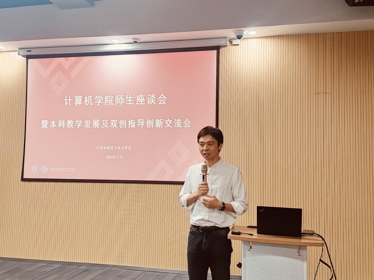 陈蕾老师表示近年学院的学生双创是学院本科人才培养的重要组成部分,近年来取得了长足进步,但仍旧存在很大的发展空间。学院大力支持双创活动发展,提供平台支撑与技术指导,希望教师们将双创育人作为学院文化积极打造,融入课堂和第二课堂。她鼓励师生们积极沟通,加强交流与反馈,实现基于双创的共同成长。